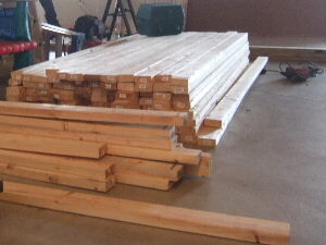 2010年01月24日 新MindBuzzスタ・・材料編・・ まずは材料購入と運び込みから まずは、柱用の木材↑ 木材自体は既に柱で使う用に加工済み。 その数なんと120本以上 これだけでも、かなりの量だよ その他にも、釘、ねじ、 断熱材、グルー、ドライウォール(壁)、 ドア、シール剤、ペンキ、などなど 次々と運び込んで、 部屋があっと言う間にいっぱいに 大人4人がかりで運び込んだんだけど、 40分以上かかったと思うなぁ~。 これが結構の重労働でしたよぉ